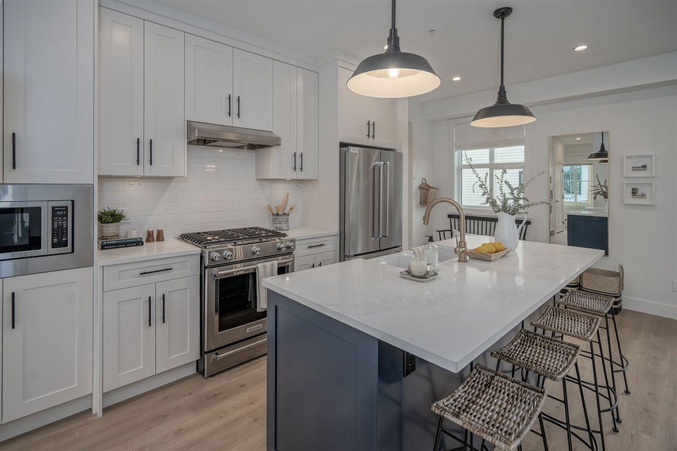 Welcome to your MODERN FARMHOUSE at HOMESTEAD! MOVE-IN READY! Proudly developed by Castlehill Homes, this beautiful boutique community is located in A+ location! Close to schools, shopping, transit +quick access to HWY 1! This 3 bedroom +flex 2.5 bath home features a 96% eff. forced GAS FURNACE with r-in for A/C, NAVIAN TANKLESS gas powered hot water system, 9′ ceilings on main, lam floor main level, powder room w/ custom cement tile flooring + shiplap, frameless glass shower w/hex tile floor in ensuite, dbl SIDE x SIDE GARAGE! Kitchen appliances incl: KitchenAID 5 burner GAS RANGE w/convec. oven, French door fridge w/water + ice, energy star d/w & built-in micro w/trim kit. Deck w/GAS BBQ box + yard perfect for pets/kids. Sales Centre Open Sat-Wed 12-5pm. 8450 204 St. MASK REQUIRED.