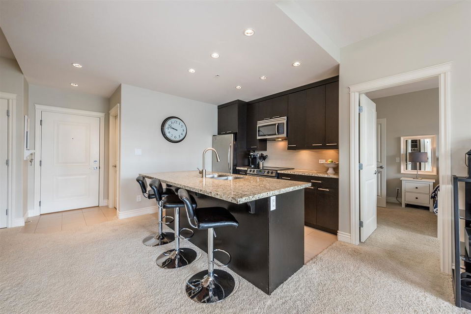 The moment you walk in you’ll feel the openness of the layout. Wide, spacious and bright. The two bedrooms are functionally located on opposite sides of the home. Like entertaining? Gather around the kitchen island and enjoy the granite countertops, pot lighting, and S/S appliances. Enjoy the sunny Southern exposure, ample windows, and large covered deck. Lots of storage, including the master walk-in closet w/extra built -in shelving. Relax in your full 5 piece ensuite. Extremely convenient walkable location. Cactus Club, Starbucks, Save-On, and Home Sense are all at your door step. Yet you won’t notice the hustle and bustle from the quiet of your home. Open House Saturday & Sunday May 13 & 14, 2-4pm.