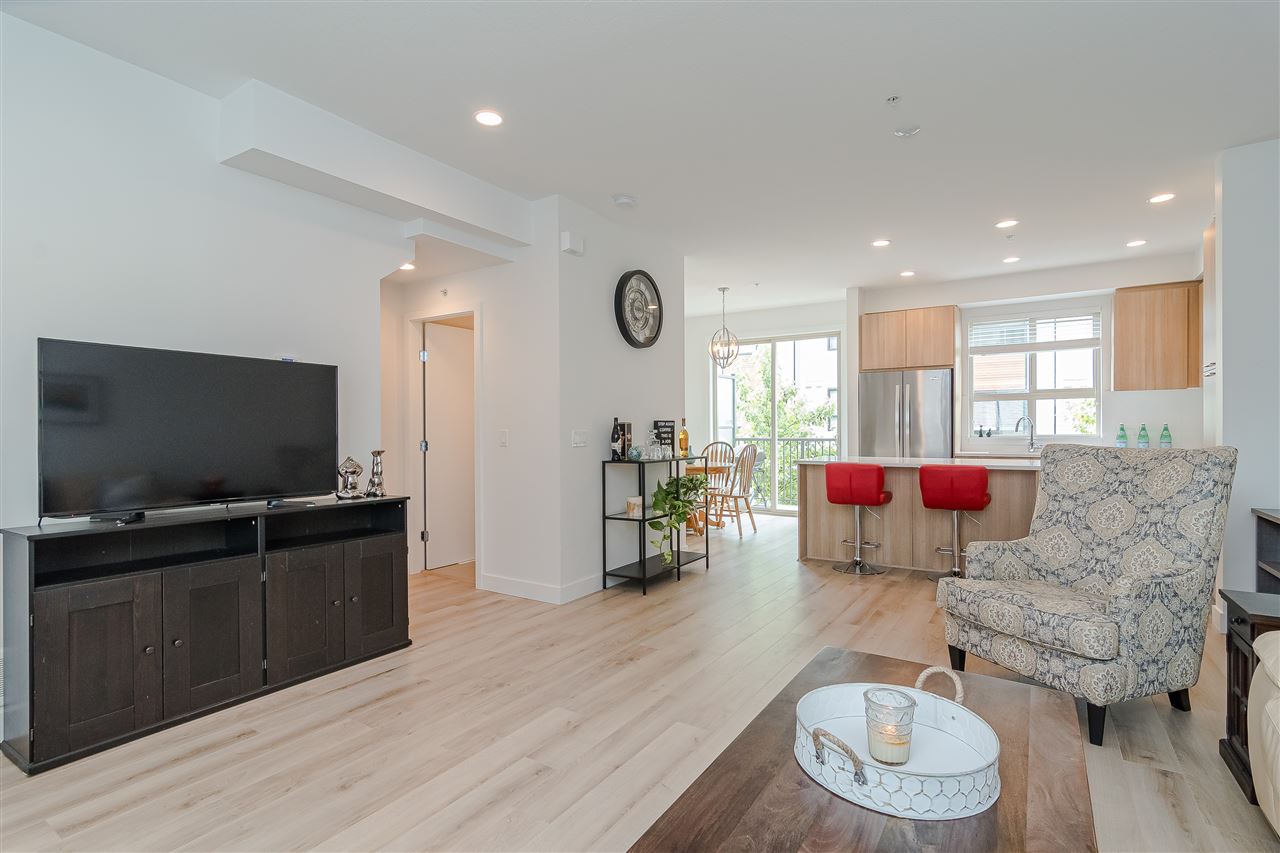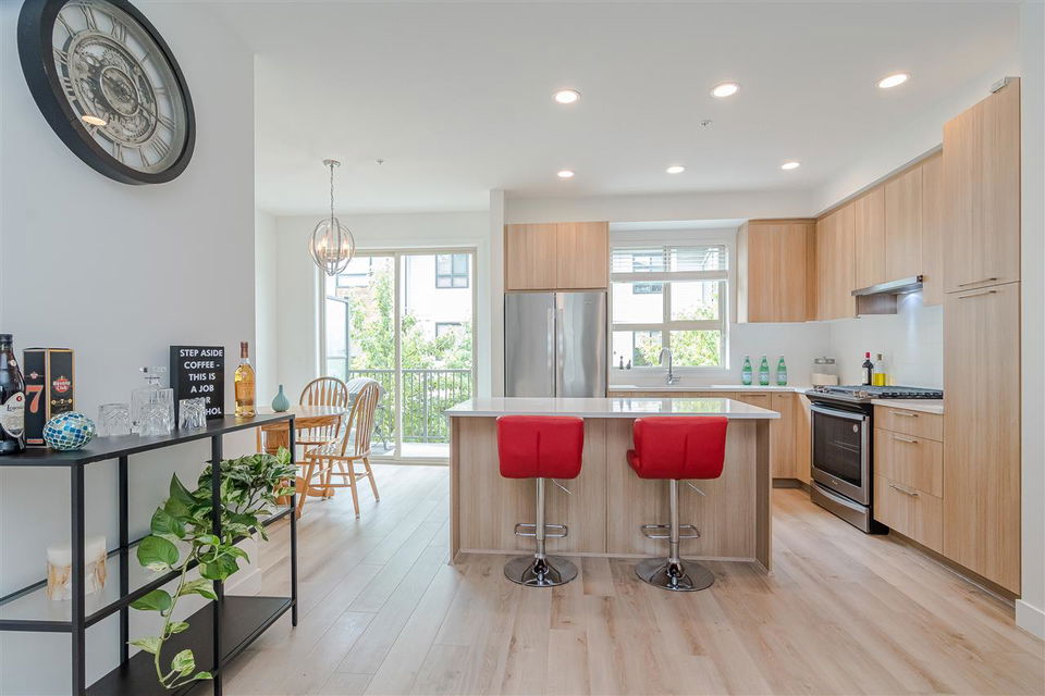 ZETTER PLACE – LIKE-NEW 3bed+den/3bath home with 4 CAR PARKING & Forced Air located within walking distance of Carvolth exchange, shopping, Yorkson Creek + network of trails, and schools for all ages. This beautiful 1400+sqft home offers a truly open concept floor plan filled with natural light. The main floor features laminate throughout, convenient powder room, spacious living area, kitchen with large island, gorgeous countertops and cabinets, gas range and stainless steel appliances, and access to south-east facing balcony. Upstairs there’s a generous sized master with elegant ensuite (double vanity!) and walk-in closet, plus 2 more good sized bedrooms, main washroom and laundry. Below there’s a den, huge double car garage + 2 more driveway spots. OPEN HOUSE Sat July 27 1-3pm