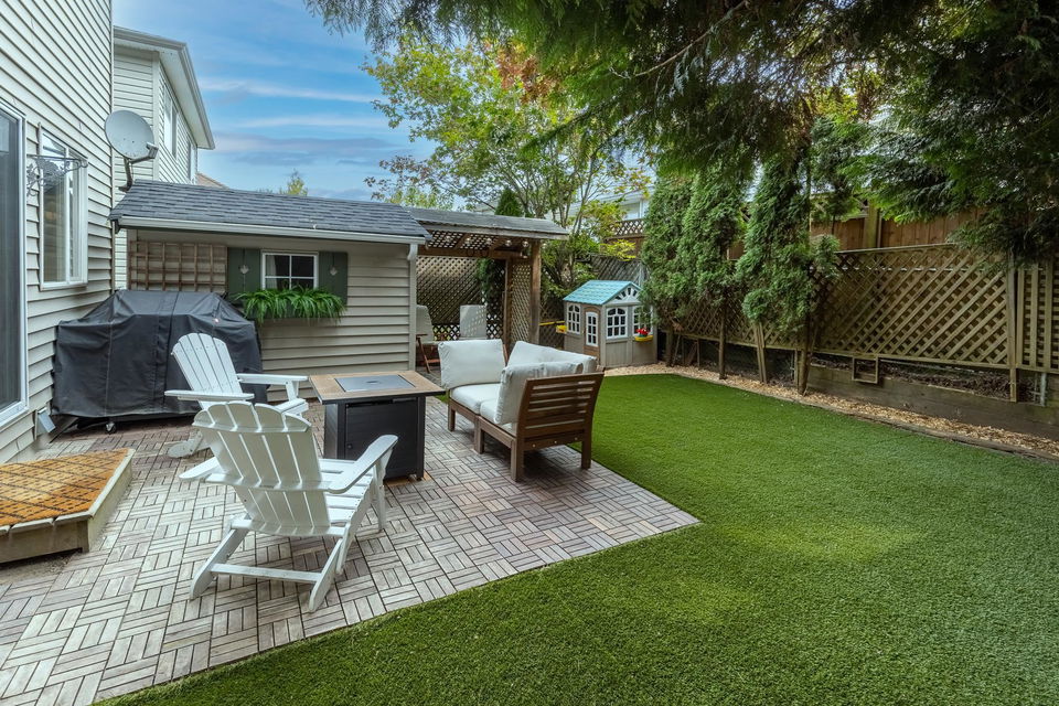 Welcome to HYLAND CREEK – close to everything you need! This home has a ton of potential for personalization. Enter into a lovely sunken living room (or great home office) and take a few steps up to the kitchen, dining area and cozy family room with gas fireplace. Step outside into a large, private, fenced and turfed backyard; tuck your tools in the shed and enjoy the evening shade! Upstairs you’ll find a spacious primary suite w/private balcony perfect for morning coffee, sunsets and stargazing, his+her closets, and 4pc ensuite with storage galore. Down the hall there are 3 more bedrooms and main 4pc bath. Downstairs is a storage haven (or future rec room) with laundry area and another bedroom perfect for a teen/guests/games room. Garage with bonus 112sqft loft storage + driveway parking.